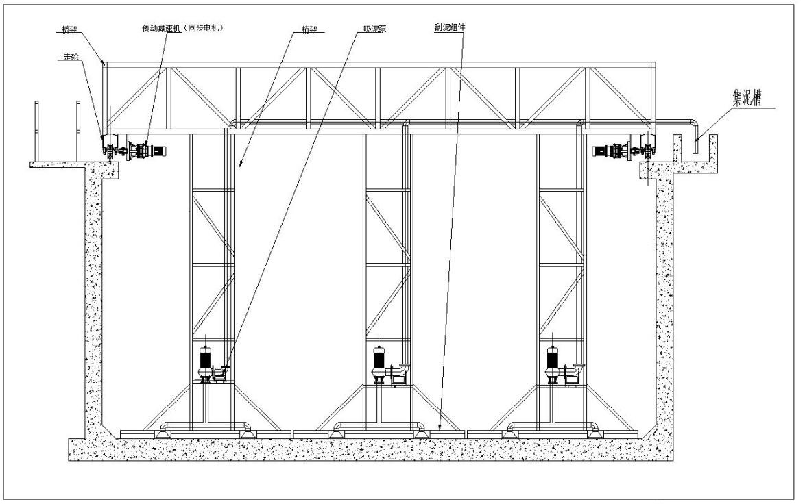 行车式吸泥机又称桥式吸泥机,是给水工程中平流式沉淀池和污水处理工程中二次平流式沉淀池等专用排泥设备。该机可以克服活性污泥比重小含水率高二难以刮集的困难,目前我公司生产的桁架式吸泥机分为斜板(管)虹吸式吸泥机、不带斜板(管)吸泥机和泵吸式吸泥机等三种。
